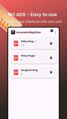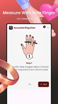 Kasutajasõbralikud visuaalsed juhendid muudavad iga sammu arusaadavaks ja lihtsaks, isegi kui mõõdate esimest korda. Nautige katkematut ja reklaamivaba kasutuskogemust, mis on keskendunud vaid teie vajadustele. Kui olete oma täpse suuruse leidnud, saate tulemused koheselt salvestada või jagada pere ja sõpradega, mis on ideaalne veebipoodide külastamiseks või kingituste tegemiseks. Olenemata sündmusest – olgu see eriline kingitus 🎁 või professionaalne vajadus 🔧 – Accurate Ring Sizer App on teie parim tööriist.
