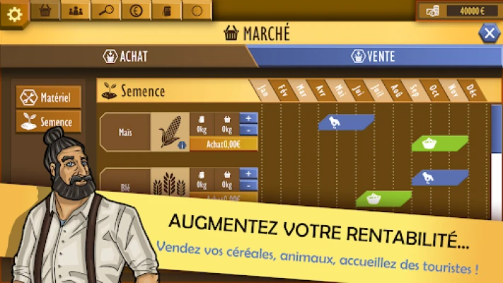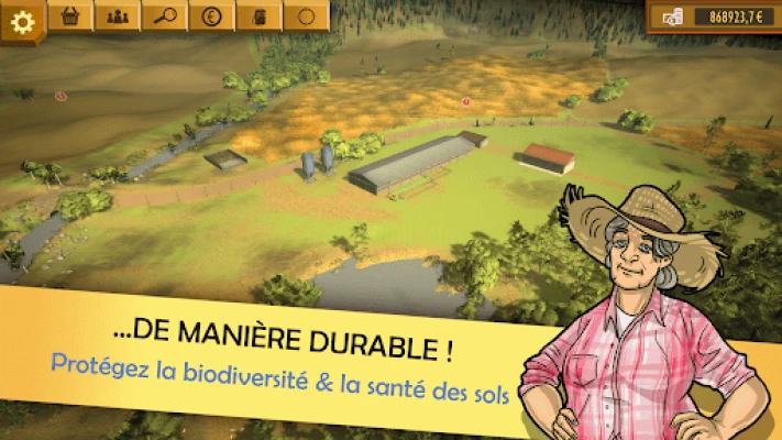 Teie virtuaalne talu tervitab teid avatud põldude ja lõputute võimalustega. Olgu tegemist seakasvatuse ja mitmekultuuriga Bretagne'is, veisekasvatusega Grand Estis või lambakarjaga Sud PACA-s, väljakutse on alati värske. Kuid te pole üksi! Pange kokku ja juhtige pühendunud meeskonda, delegeerides elutähtsaid ülesandeid nagu külvamine, loomade hooldus, puhastamine, väetamine ja isegi turistide võõrustamine. Pidage meeles, et õnnelik ja puhanud meeskond on ülioluline; nende liigne kurnamine võib kahjustada teie talu sotsiaalse heaolu näitajat.