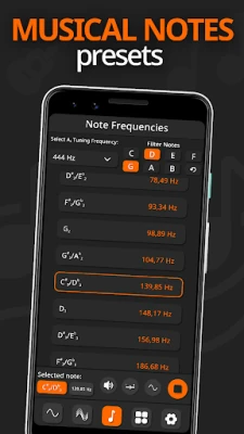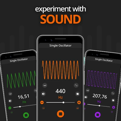 Rakendus Sagedusheli generaator on loodud kasutajakogemust silmas pidades. See võimaldab sisestada sageduste jaoks kümnendväärtusi, tagades enneolematu täpsuse. Iga loodud tooniga kaasneb animeeritud helilaine visualiseering, mis aitab sagedusi paremini mõista. Valida saab mitme lainekuju vahel – siinus, ruut, kolmnurk ja saehammas –, et kohandada heli täpselt oma vajadustele. Puhas ja intuitiivne kasutajaliides teeb navigeerimise lihtsaks, pakkudes ligipääsu kõigile tööriistadele vaid mõne puudutusega. Kohandage rakendust veelgi seadete menüüs, muutes teemasid, aktiveerides oktaavinuppe ja täpsustades kümnendkohtade näitamist. Palun pidage meeles, et telefoni sisseehitatud kõlarite helikvaliteet võib varieeruda, mistõttu on kõrgemate sageduste katsetamisel soovitatav helitugevust vähendada, et vältida ebamugavust.
